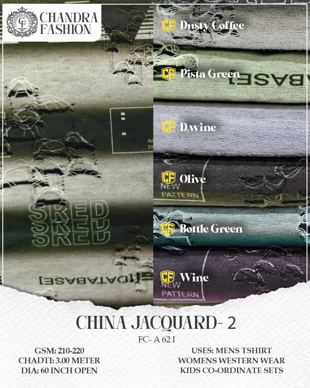 Top wear Fabric , T shirt Fabric , Bottom Wear Fabric , Lower Wear Fabric and Co-rd Sets Fabric