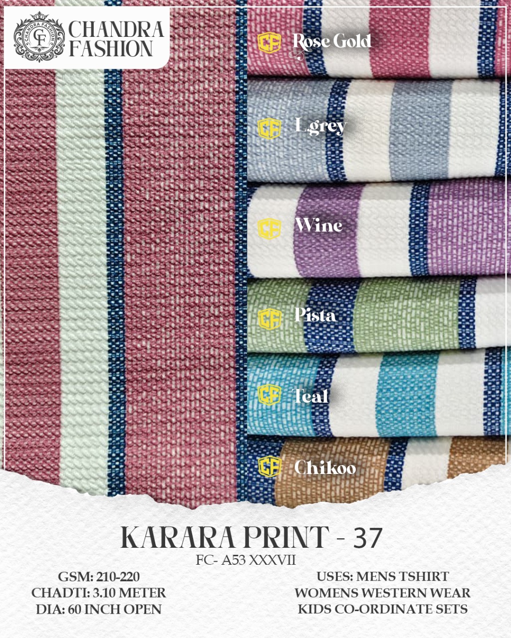 Top wear Fabric , T shirt Fabric , Bottom Wear Fabric , Lower Wear Fabric and Co-rd Sets Fabric