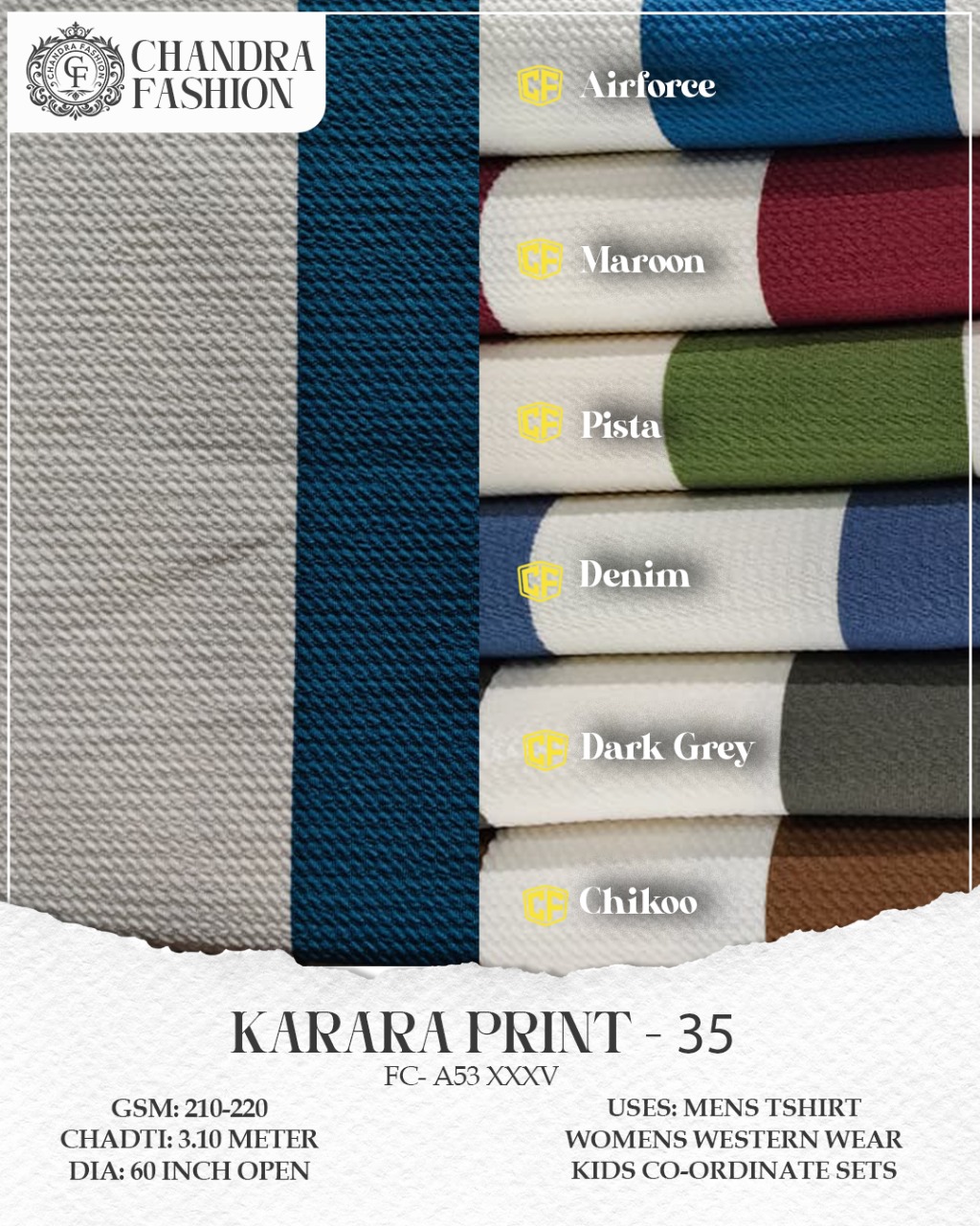 Top wear Fabric , T shirt Fabric , Bottom Wear Fabric , Lower Wear Fabric and Co-rd Sets Fabric