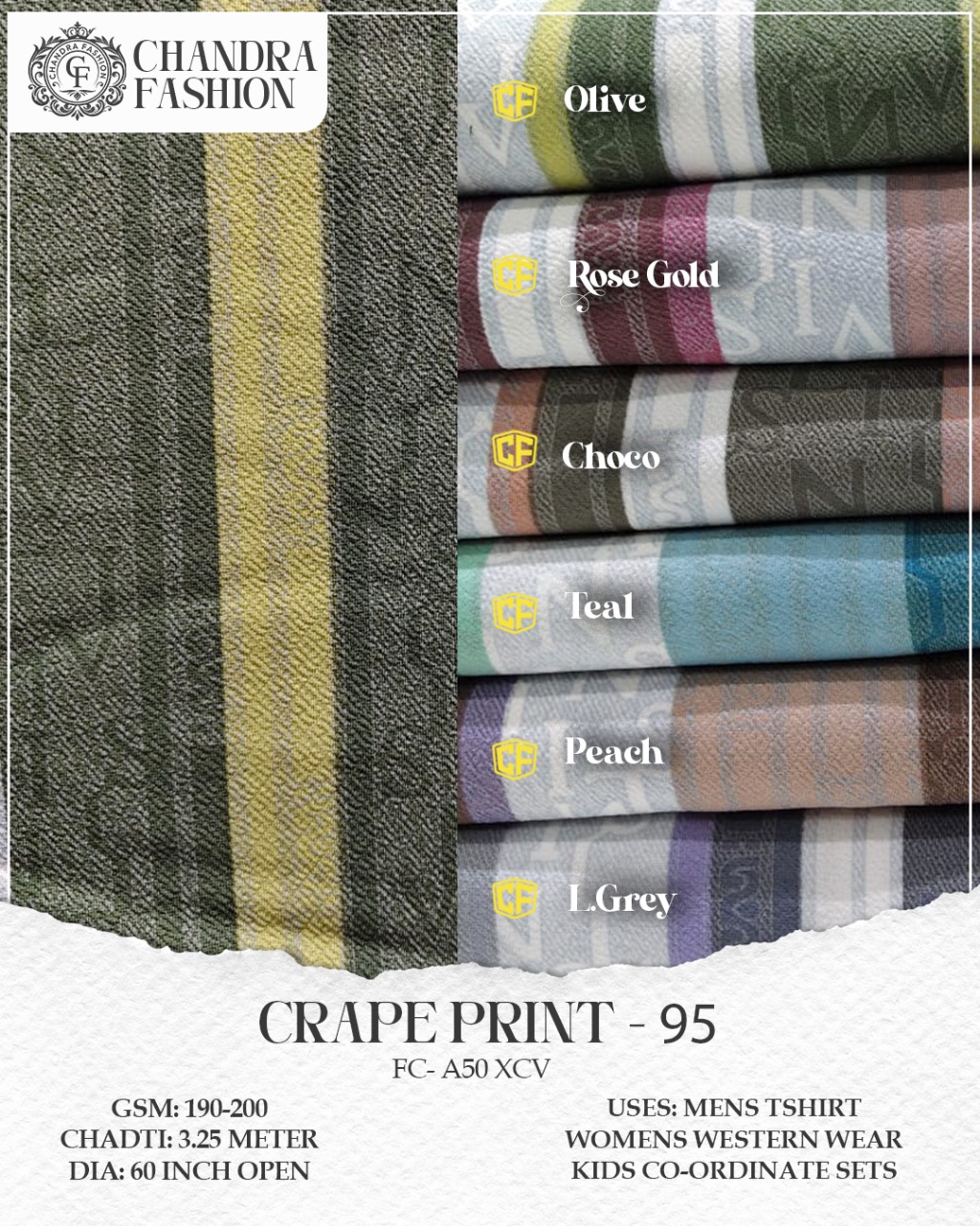 Top wear Fabric , T shirt Fabric , Bottom Wear Fabric , Lower Wear Fabric and Co-rd Sets Fabric