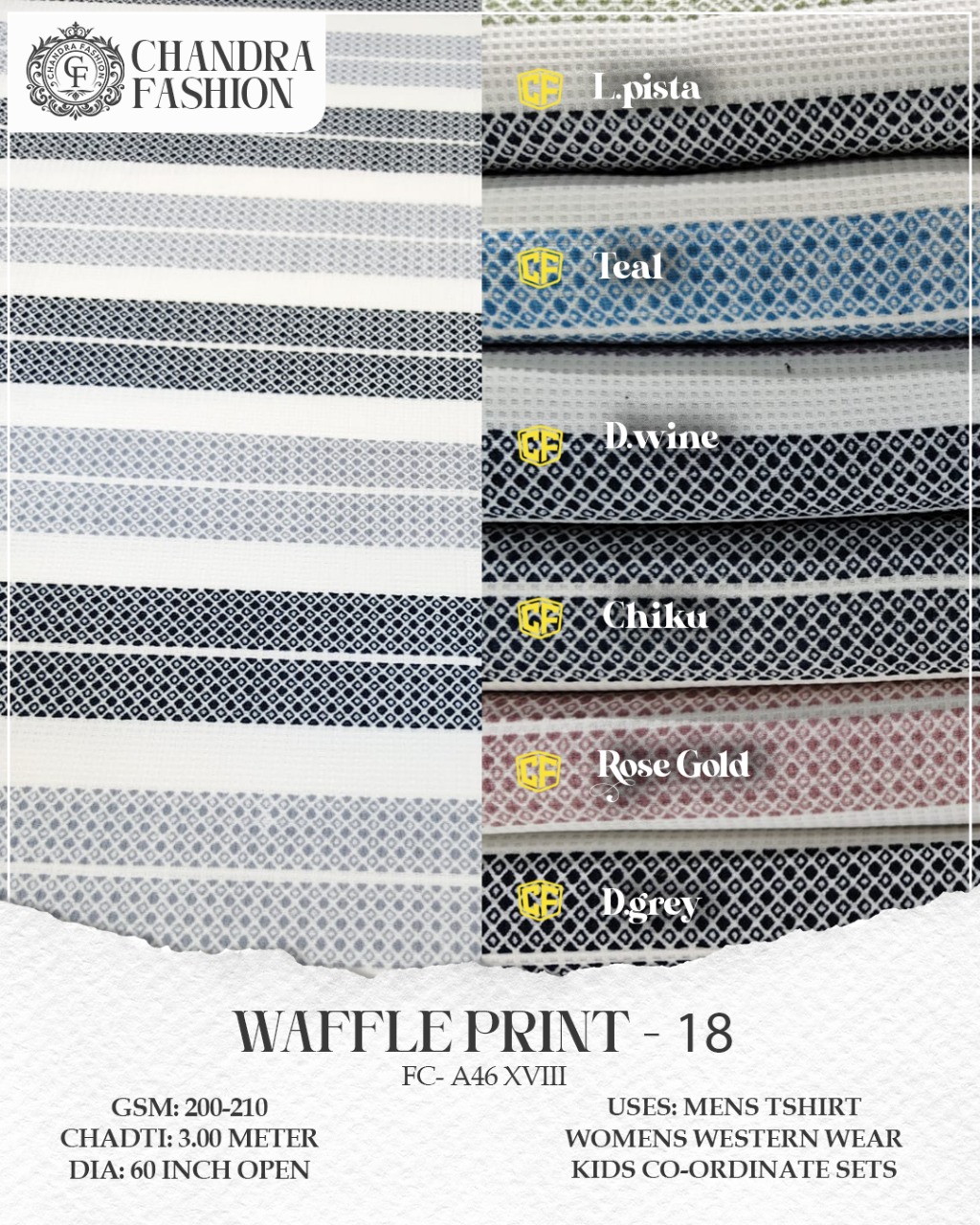 Top wear Fabric , T shirt Fabric , Bottom Wear Fabric , Lower Wear Fabric and Co-rd Sets Fabric