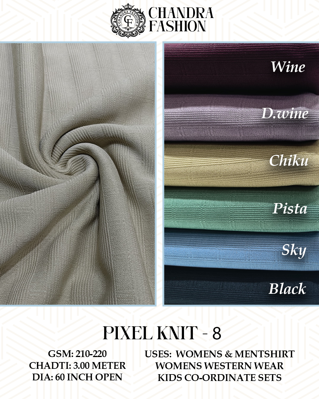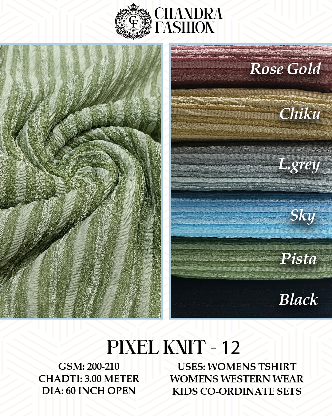 Top wear Fabric , T shirt Fabric , Bottom Wear Fabric , Lower Wear Fabric and Co-rd Sets Fabric