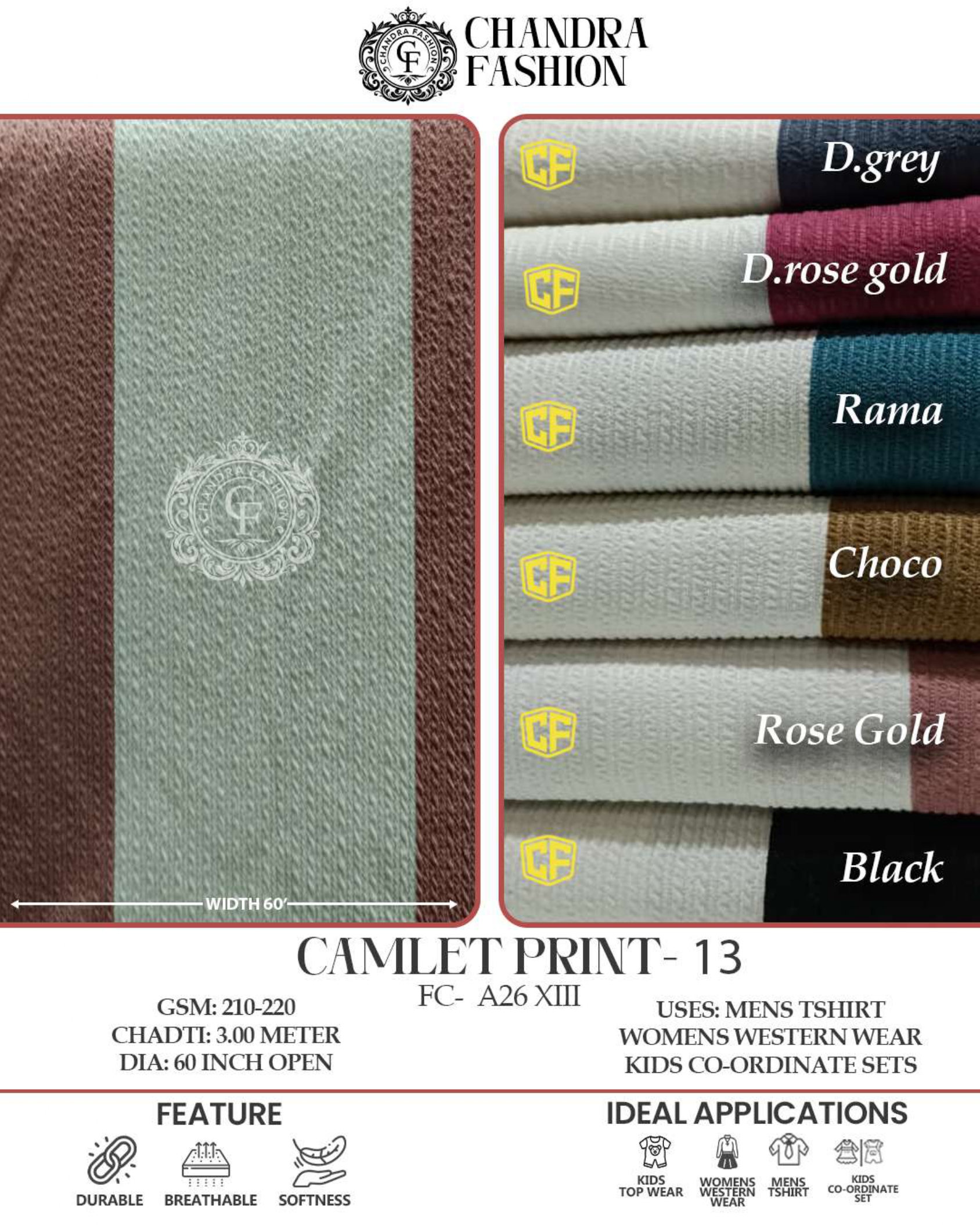 Top wear Fabric , T shirt Fabric , Bottom Wear Fabric , Lower Wear Fabric and Co-rd Sets Fabric