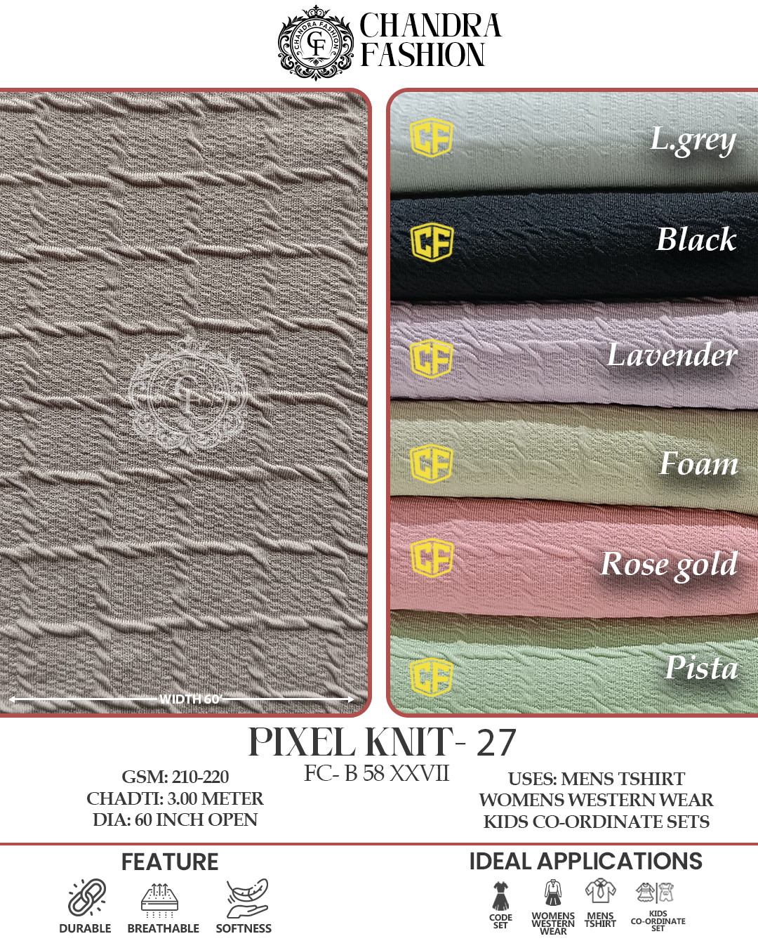 Top wear Fabric , T shirt Fabric , Bottom Wear Fabric , Lower Wear Fabric and Co-rd Sets Fabric