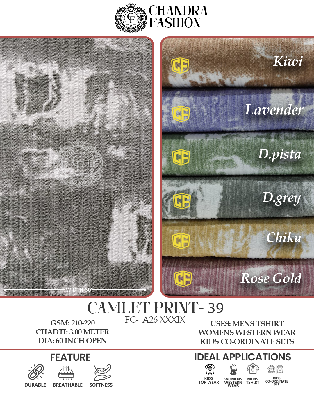 Top wear Fabric , T shirt Fabric , Bottom Wear Fabric , Lower Wear Fabric and Co-rd Sets Fabric