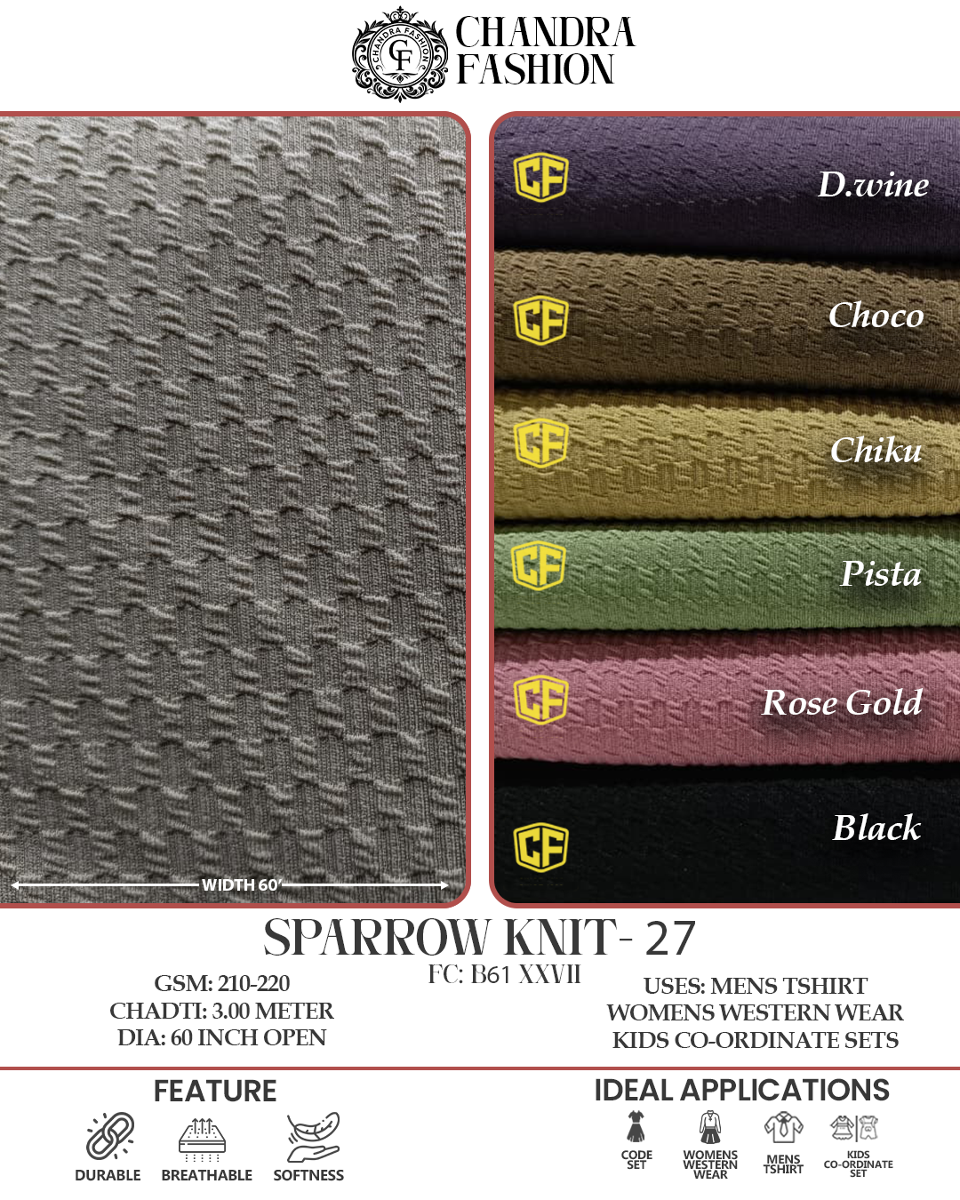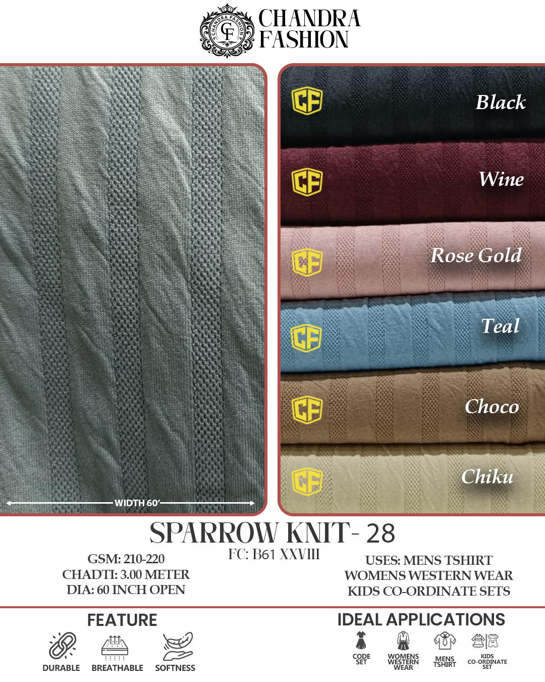 Top wear Fabric , T shirt Fabric , Bottom Wear Fabric , Lower Wear Fabric and Co-rd Sets Fabric