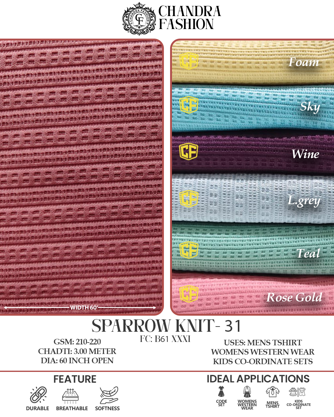 Top wear Fabric , T shirt Fabric , Bottom Wear Fabric , Lower Wear Fabric and Co-rd Sets Fabric