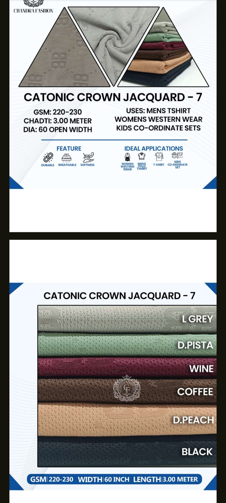 Top wear Fabric , T shirt Fabric , Bottom Wear Fabric , Lower Wear Fabric and Co-rd Sets Fabric