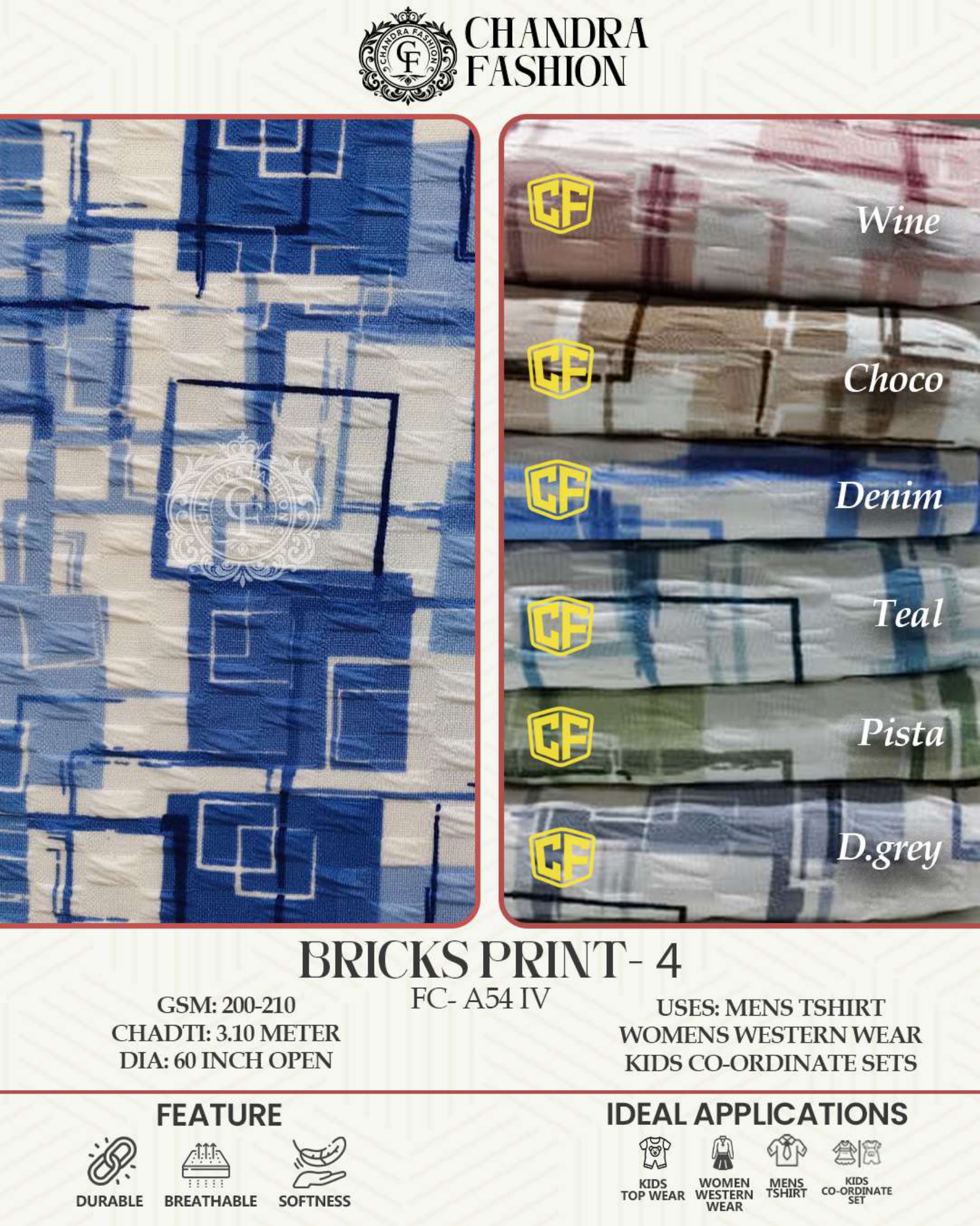 Top wear Fabric , T shirt Fabric , Bottom Wear Fabric , Lower Wear Fabric and Co-rd Sets Fabric