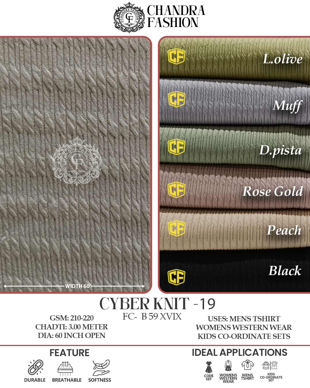 Top wear Fabric , T shirt Fabric , Bottom Wear Fabric , Lower Wear Fabric and Co-rd Sets Fabric